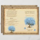 Árbol de hojas de corazón azul en polvo liviano Árbol mágico de amor Árbol de hojas de corazón azul real sobre el té manchado de papel metálico plateado fresco y algunos pequeños y bonitos diseños para realzar las raíces del amor en esta invitación nupcial única...