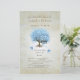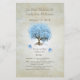 Árbol de hojas de corazón azul en polvo liviano Árbol mágico de amor Árbol de hojas de corazón azul real sobre el té manchado de papel metálico plateado fresco y algunos pequeños y bonitos diseños para realzar las raíces del amor en esta invitación nupcial única...