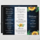 El elegante y moderno programa rústico de bodas triplicado presenta flores de girasol amarillas brillantes y un marco floral de aliento de bebé / gypsophila con hojas sobre fondo de madera de granero azul marino. Encontrará más diseños y variaciones de mi tienda "blissweddingpaperie". Y no dudes en ponerte en contacto conmigo para seguir personalizando o haciendo coincidir artículos.