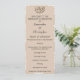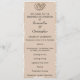 Un programa de bodas muy elegante, a medida, de color rosa melocotón suave, que forma parte del juego de papelería boda "Peach Damask", decorado con un diseño de damasco blanco y rosa salmón con adornos dorados.