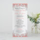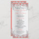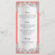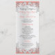 Personalizado de encaje floral plateado como diseño con fondo coralino o cambio de color como preferimos. Personalizar con detalles del boda, información de la ceremonia, menú o cualquier texto en esta tarjeta de dos caras.