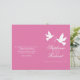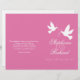 Dos palomas blancas dobles simples con dos cintas rosadas programa de boda. Parte del conjunto estacionario del boda de paloma blanca. tonos rosa y blanco pastel. Edite este programa de bodas con su propio nombre, fechas, redacción de la ceremonia, asistentes a la fiesta de bodas y gracias . Un programa sencillo pero elegante simplemente reemplaza el texto de ejemplo con los detalles de la información del boda y dobla los programas a la mitad en el momento de la entrega. Diseño único de Sarah Trett.