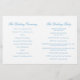 Dos palomas blancas dobles simples con dos cintas azules programa de boda. Parte del conjunto estacionario del boda de paloma blanca. tonos azul pastel y blanco. Edite este programa de bodas con su propio nombre, fechas, redacción de la ceremonia, asistentes a la fiesta de bodas y gracias . Un programa sencillo pero elegante simplemente reemplaza el texto de ejemplo con los detalles de la información del boda y dobla los programas a la mitad en el momento de la entrega. Diseño único de Sarah Trett.