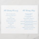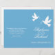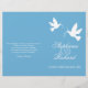 Dos palomas blancas dobles simples con dos cintas azules programa de boda. Parte del conjunto estacionario del boda de paloma blanca. tonos azul pastel y blanco. Edite este programa de bodas con su propio nombre, fechas, redacción de la ceremonia, asistentes a la fiesta de bodas y gracias . Un programa sencillo pero elegante simplemente reemplaza el texto de ejemplo con los detalles de la información del boda y dobla los programas a la mitad en el momento de la entrega. Diseño único de Sarah Trett.