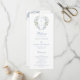 Elegante programa de bodas, adornado con un impresionante escudo de monograma boda floral azul suave y caligrafía clásica. El escudo monograma añade un toque de elegancia vintage al programa. Presenta un diseño botánico suave, azul y verde, atemporal y único. La elegante caligrafía aporta un toque personal al programa, romántico y encantador.