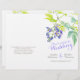 Arte botánico simple de doble cara, pintura crepúsculo de papa sobre un programa de boda de fondo blanco. Bonito violeta, verde, blanco y gris. Edite este programa de bodas con su propio nombre, fechas, redacción de la ceremonia, asistentes a la fiesta de bodas y gracias . Un programa sencillo pero elegante simplemente reemplaza el texto de ejemplo con los detalles de la información del boda y dobla los programas a la mitad en el momento de la entrega. Flor morada moderna y romántico programa de ceremonia de boda. Arte y diseño original de la acuarela de la sartén por Sarah Trett.