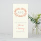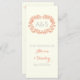 Ceremonia de boda del boda del marco de coral naranja de la floración de guirnalda y programa de fiesta con un marco de coral hecho de hojas, sus iniciales y texto en gris sobre marfil. Este moderno y elegante modelo monogramado es un diseño de personalizable totalmente parte de un conjunto boda perfecto para su boda de primavera o verano.