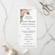 Un bonito programa de bodas floridas rosadas, ideal para un boda de temática botánica o un jardín. Esta tarjeta de bonito tiene un ramo de rosas rosas en la esquina superior izquierda de la parte delantera, resaltada por helechos verdes. Todos los detalles de ambos lados de la tarjeta pueden ser fácilmente personalizados para adaptarse. En el reverso se ve un aspecto más claro, con una sola rosa rosa en el fondo. Este programa de bodas rosadas forma parte de una colección de bodas que se puede ver en su totalidad aquí: https://www.zazzle.com/collections/pink_roses_and_ferns_wedding-119521965467361430