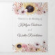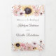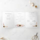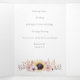 Esta tarjeta de programa de bodas triplicada tiene mucho espacio para incluir todos los detalles de la ceremonia boda y cuenta con hermosos ilustraciones de girasoles dorados amarillos y otras flores en rosa suave y amarillo.