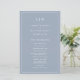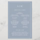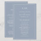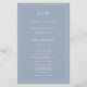 Programa de Bodas Sencillas con un diseño moderno y elegante con su monograma de dos letras en la parte superior y sus detalles rodeados por un borde delgado. Todo el texto está en blanco sobre un fondo azul polvoriento y puede cambiarse en la herramienta de edición de diseño. La parte delantera tiene tu orden de ceremonia y la parte trasera tiene tu fiesta de boda y mensaje de agradecimiento. Una moda y un diseño de diseño, ideal para una pareja minimalista. Estos programas de boda baratos se imprimen en hojas de papel para una opción asequible.