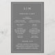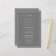 Programa de Bodas Sencillas con un diseño moderno y elegante con su monograma de dos letras en la parte superior y sus detalles rodeados por un borde delgado. Todo el texto está en blanco sobre un fondo gris medio y puede cambiarse en la herramienta de edición de diseño. La parte delantera tiene tu orden de ceremonia y la parte trasera tiene tu fiesta de boda y mensaje de agradecimiento. Una moda y un diseño de diseño, ideal para una pareja minimalista. Estos programas de boda baratos se imprimen en hojas de papel para una opción asequible.