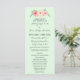 Programa de boda personalizado en flores silvestres de acuarela rosa rosa de color rosa con fondo de menta. Personalizar estas tarjetas del orden de la ceremonia con tu propio texto.