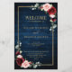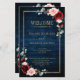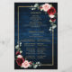 Elegante y moderna tarjeta de programa de boda floral con acuarela geométrica floral, romántica y romántica con hermosos burdeos / marsala, rosas rosa, melocotón, acuarela azul marino, follaje a juego sobre el fondo rústico de madera azul marino y marco dorado. Perfecto para un boda de otoño/verano medio. Encontrará más diseños y variaciones de mi tienda "blissweddingpaperie". Y no dudes en ponerte en contacto conmigo para seguir personalizando o coincidiendo con elementos