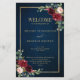 Elegante y moderna tarjeta de programa de boda floral con acuarela geométrica floral, romántica y romántica con hermosos burdeos / marsala, rosas rosa, melocotón, acuarela azul marino, follaje a juego sobre el fondo rústico de madera azul marino y marco dorado. Perfecto para un boda de otoño/verano medio. Encontrará más diseños y variaciones de mi tienda "blissweddingpaperie". Y no dudes en ponerte en contacto conmigo para seguir personalizando o coincidiendo con elementos