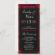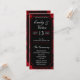 Este es un conjunto de programas de bodas de estilo gótico que puedes personalizar. El diseño presenta rosas rojas y un fondo negro rojo bordeado con letras blancas que detallan los detalles de la ceremonia de tu boda en un estilo oscuro y elegante. Edite la plantilla en el contenido de sus corazones y después simplemente imprima lo que necesite.