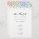 Programa de Boda de Guión Presupuestaria Purpurina Arcoiris. Un tamaño mayor de 5,5" x 8,5" a un precio económico, en una elegante reserva LINEN de 110 lb - para un ambiente de lujo a una gran relación calidad-precio, es perfecto para invitaciones, menús, programas, etc. Esta alternativa de tamaño de presupuesto de 5,5 x 8,5" también está disponible en otras opciones de papel. El material de la tarjeta SEMI-GLOSS de 110 lb es aproximadamente del mismo grosor que una postal, por lo que también funciona bien para las invitaciones. El papel FELT de 100 libras es de color buff, NO blanco, por lo que añade un toque rústico. El material de papel MATTE 80lb es blanco brillante, para impresión crujiente, ideal para menús y programas, mientras que el papel SATIN de 80 libras es delgado y liviano, ideal para gabinetes. Estilo glam con purpurina falso multicolor que bordea la parte superior de cada lado. Personalice fácilmente el texto según sus propios requisitos.