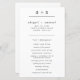 Programa de bodas moderno con un diseño sencillo que incluye tu monograma, nombres y fecha en una fuente sans serif negra, sobre un fondo blanco. Estos programas de boda contemporáneos son perfectos para un boda minimalista. Estos programas de boda baratos se imprimen en hojas de papel para una opción asequible.