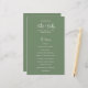 Programa de bodas verde sabio moderno con un diseño sencillo con sus nombres en una tipografía de escritura elegante y sus detalles del evento en una fuente minimalista sans serif. Este programa de bodas de moda funciona bien con cualquier estilo de boda.