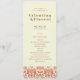 Celebre su día especial con nuestro programa de bodas Naranjas inspiradas en la retro de los años 70, una novedosa y elegante incorporación a su suite de papelería boda. Disfrute de las vibrantes vibraciones de los años 70 con este diseño de inspiración retro, perfecto para parejas que buscan una manera única y memorable de guiar a sus invitados durante la ceremonia. Proporcione a sus huéspedes un recuerdo duradero de su día especial con nuestro programa de boda Naranja inspirado en la retro de los años 70. Es una manera divertida y memorable de guiarlos durante la ceremonia y mantenerlos comprometidos de principio a fin.