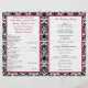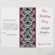 Este moderno programa de bodas de damasco negro, blanco y rojo o orden de servicio es totalmente personalizable. Está diseñado para plegarse por el centro. ****TENGA EN CUENTA que el papel de mayor calidad es un material ligero que no se dobla bien. Antes de doblarlo, necesitaríamos obtener una puntuación previa con una hoja afilada. El artículo de valor es lo que sugiero usar, ya que es como un papel de revista de buena calidad. Si tienes alguna pregunta, o necesitas ayuda para personalizarla con tu propia información, o si deseas que el rojo cambie a otro color, por favor contacta niteowlstudio@gmail.com.