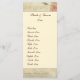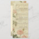 Esta tarjeta de rack cuenta con una imagen de fondo de papel vintage con música y rosas; utilice esto para un programa de boda, fiesta de boda, orden de eventos, menú, cualquier cosa. Fácil de personalizar.