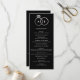 El texto limpio y moderno es fácilmente personalizado en esta moda, formato delgado, programa de bodas. El negro y el blanco se sienten sofisticados y frescos cuando se acentúan con un falso Relieve metalizado de plata gráfico de anillos de boda interbloqueados.