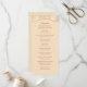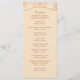 Esta elegante tarjeta de programa de bodas coincide con las Invitaciones de boda de Rosas Tangerine Border y otros productos de boda en nuestra tienda. En la parte superior hay un borde de mandarina pálida y rosas crema sobre un fondo blanco. Un borde marrón de canela separa la imagen del patrón rosa de la parte media de la tarjeta. El texto de su personalizado está en canela, y hay mucho espacio para su personalización. La parte posterior de la tarjeta es el naranja de la mandarina pálida.