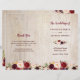 Crea el programa perfecto de bodas con esta plantilla "Rustic Woodgrain Look Burgundy Floral". ¡Este diseño de alta calidad es fácil de personalizar para ser único en el suyo! (1) Tenga en cuenta que las tarjetas llegan planas, y tendrá que Doblar hacia abajo el medio para convertirlas en papeles doblados. (2) Para una mayor personalización, haga clic en el botón "Personalizar" y utilice nuestra herramienta de diseño para modificar esta plantilla. (3) Si necesita ayuda o elementos coincidentes, póngase en contacto conmigo.