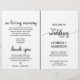 Este sencillo programa de bodas de caligrafía blanca y negra es perfecto para un boda rústico o moderno. El diseño minimalista incluye un elegante guión de broche y un bonito corazón femenino. Incluya el nombre de la novia y el novio, la fecha y ubicación del boda, una cita corta, mensaje de agradecimiento, orden de servicio, fiesta de novias y un monumento conmemorativo "en memoria amorosa". Por favor, tenga en cuenta que estos programas llegan planos, que deberás doblarlos a la mitad cuando lleguen.