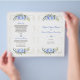 Elegante diseño de cartas con flores azules de moda acuática y hojas verdes, un marco falso purpurina dorado roto y confeti, divisor floral, sobre un fondo blanco. Utilice la herramienta Personalize para agregar su información, cambiar tipos de letra, colores de letra. Para ver los elementos coincidentes, por favor, visite mi Colección de Floral Azul.
