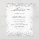 Tenga en cuenta que este programa está en papel de volante y es muy delgado. Para un programa más grueso (el mismo diseño) visite nuestra tienda. En el frente: Un moderno y elegante programa de bodas, cronología. Un fondo blanco decorado con purpurinas falsos de plata, chispas. Personalice y agregue sus nombres y detalles del boda. Letras de color negro. Si tienes más texto es posible reducir el espacio de línea. Atrás: fondo falso plateado y destellos.