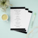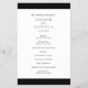 Volante moderno del programa de bodas en blanco y negro con una audaz banda de negro en la parte superior e inferior. Sus nombres están en un tipo de letra serif clásico y sus detalles están en una combinación de un tipo de letra sans serif moderno y un guión elegante. La parte posterior tiene una banda en la parte inferior junto con su monograma. Este diseño sencillo y mínimo, con una redacción tradicional, es ideal para un boda formal.
