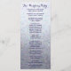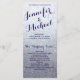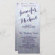 Este encantador y elegante programa de bodas presenta sutiles resaltados purpurinas en tonos azules y violetas y se vería muy bien para cualquier boda o evento. Es totalmente personalizable con tu texto, y puedes cambiar el tipo de letra y los colores para que sea realmente tuyo. Nota: El fondo es una impresión gráfica y no contiene ningún purpurina desordenado. Diseño de Amelia Carrie.