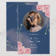 Crea una primera impresión inolvidable con este elegante programa de bodas azul marino, con delicadas rosas rosas rosas rubias y un diseño de acuarela floral de ensueño. El marco circular de fotos bordeadas de oro destaca maravillosamente a la pareja, agregando un toque personal a la invitación. La refinada mezcla de caligrafía y fuentes serif realza la estética clásica pero romántica, haciéndola perfecta para bodas modernos, elegantes y atemporales. Ideal para parejas que buscan un programa sofisticado con un suave y encantador toque floral. F014