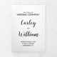 Un sencillo y elegante programa de boda triple pliegue. Este diseño atemporal irá con cualquier tema boda. El color de fondo como se muestra es blanco, pero el color de fondo y el texto se pueden personalizar para que coincidan con los colores bodas.