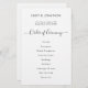 Tamaño 5.5" x 8.5" a precio de presupuesto, Este sencillo diseño tipográfico totalmente personalizable tiene encabezado Orden de Ceremonia está en un guión negro elegante. Personalice fácilmente el texto a sus propios detalles en ambos lados. También puede cambiar los colores del texto y los tipos de letra si lo desea mediante la opción de personalización adicional, así como los colores de fondo.
