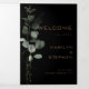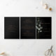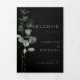 Este programa de bodas triplias mínimo y negro es perfecto para complementar a un boda rústico. El diseño presenta un eucalipto verde acuarela de fondo negro.