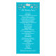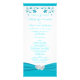 Esta romántica tarjeta floral blanca y turquesa o verde azulada tarjeta floral tiene la imagen de un par de corazones unidos encima de una imagen azul turquesa de cinta que cruza la parte inferior de la tarjeta. En la parte superior del programa de bodas se encuentra un arco floral de flores y viñas turquesas con un texto azul turquesa sobre un fondo blanco que lleva los nombres de la novia y el novio, la fecha boda y todos los detalles de la ceremonia boda sobre la cinta. El fondo es azul turquesa con flores plateadas arqueadas sobre los detalles de la fiesta de boda en blanco. Si necesita algún elemento adicional coincidente, envíe su solicitud a niteowlstudio@gmail.com o utilice la función de chat Zazzle para ponerse en contacto.