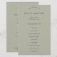 Programa de Boda Verde Sage Blanda Simple. Tamaño de 5,5" x 8,5" a un precio económico, Un diseño tipográfico sencillo y elegante con texto negro sobre verde pálido para sus programas de boda, que es totalmente personalizable. El texto, que puede personalizar fácilmente, está centrado en ambos lados. Puede cambiar el texto y los colores de fondo si desea coincidir con su tema de color boda a través de la opción Personalizar Más adelante, así como otras modificaciones que puede necesitar. Si necesitas ayuda para editar este diseño, por favor envíame un mensaje.