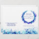 Sencillo arte de salpicaduras de color azul abstracto de doble cara en un programa de bodas de fondo blanco. Edite estos programas de boda con su propio nombre, fechas, redacción de la ceremonia, asistentes a la fiesta de boda y gracias. Un programa sencillo pero elegante simplemente reemplaza el texto de ejemplo con los detalles de la información del boda y dobla los programas a la mitad en el momento de la entrega. Programa de ceremonias de bodas de arte acuático de pasto follaje azul moderno. © Pintura original y diseño de Sarah Trett. www.sarahtrett.com para www.mylittleedenweddings.com