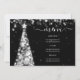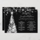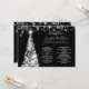 Boda elegante y festivo del menú de plata de árbol de Navidad, con programa fiesta y texto de menú, purpurina luces árbol de Navidad y escritura moderna de tipografía.
