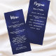 programa de recepción de boda y menú. Personalice y agregue su nombre, su programa y el menú. Fondo azul marino, texto blanco. El color azul es desigual.