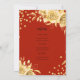 Elegante Purpurina Glam Gold Red Floral 30th Birthday Script con programación fiesta y texto de menú, arreglos florales, confeti purpurina y escritura moderna de tipografía.