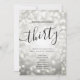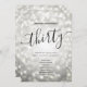 Elegante Purpurina Glam Silver ilumina plantilla de guión de cumpleaños número 30 con programa fiesta, texto de menú, luces purpurinas y escritura moderna de tipografía.