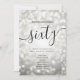 Elegante Purpurina Glam Silver ilumina la plantilla de guión de cumpleaños número 60 con el programa fiesta y el texto del menú, luces purpurinas y escritura moderna de tipografía.