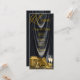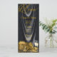 Menú de fiesta de cumpleaños de mujer negro y dorado y programa con hermosos zapatos de tacón alto dorados, regalos, perfume y copas de champán en un bonito fondo de satín negro. Estos menús o programas de fiesta negros y dorados se personalizan fácilmente con el texto que elija en la parte delantera y trasera en el estilo de fuente que prefiera. No se puede eliminar el menú.