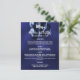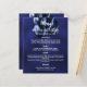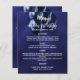Un fondo azul marino. El color azul es desigual. Texto blanco. Decorada con globos azules. Front: Personalice y agregue su nombre, fecha y menú. Volver: Programa. Si tiene un programa grande puede reducir el espaciado de línea. 1 hoja = 1 borde impreso del menú a borde.