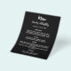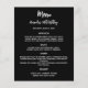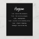 Tenga en cuenta que este menú/programa está en papel de volante y es muy delgado. Para menús/programas (mismo diseño) visite nuestra tienda. Un fondo negro clásico. Texto blanco. Front: Personalice y agregue su nombre, fecha y menú. Volver: Programa. Si tiene un programa grande puede reducir el espaciado de línea.