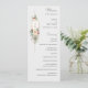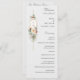 Este encantador programa botánico de invierno cuenta con ramos de rosas y flores de marfil, bayas rojas de flores, abetos y copos de nieve dorados que rodean un elegante sello dorado para su monograma sobre un fondo gris perla pálido. Incluye campos de texto editables para la ceremonia y los participantes de la fiesta de boda.