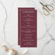 Una moda y una tarjeta de programa moderna con un fondo de ciruela aterciopelado. El título aparece en un guión animado y los detalles aparecen en un tipo de letra serif moderado y sofisticado.